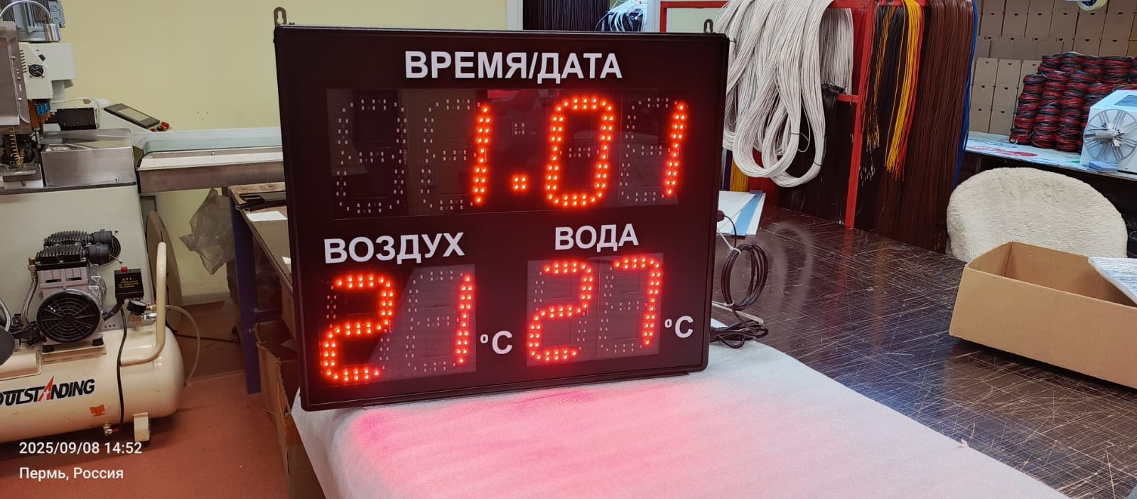 Широкий угол обзора и высокая яркость делают показания читаемыми с разных точек, а дистанционное управление позволяет легко переводить время и менять режимы отображения.