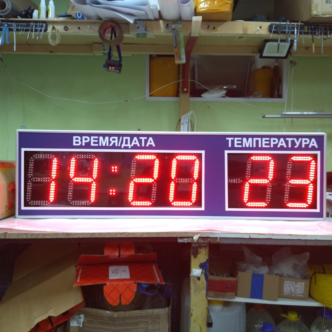 Крупные цифры (часто 400–800 мм высотой) видны на десятки и даже сотни метров, что удобно для площадей, вокзалов и торгово‑развлекательных центров.